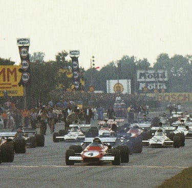 Hair-raising dodging by following drivers ensued as Ickx, Amon, and Regazzoni bypassed the first chicane on the unused part of track. A massive dust cloud rose up, obliterating visibility and creating the most perilous start situation in years.