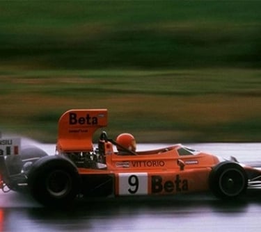 Amid the chaos, Lauda’s Ferrari struggled for grip, and Hunt capitalized to take the lead mid-race. But it was Vittorio Brambilla, the feisty Italian driving a March 751, who would define the day. Brambilla, adept in wet conditions, charged through the field — his racecraft slicing through spray and spray-blinded rivals — and by lap 19 he had reached the front after a bold overtaking move. As the downpour intensified, so did Brambilla’s gap to his competitors.