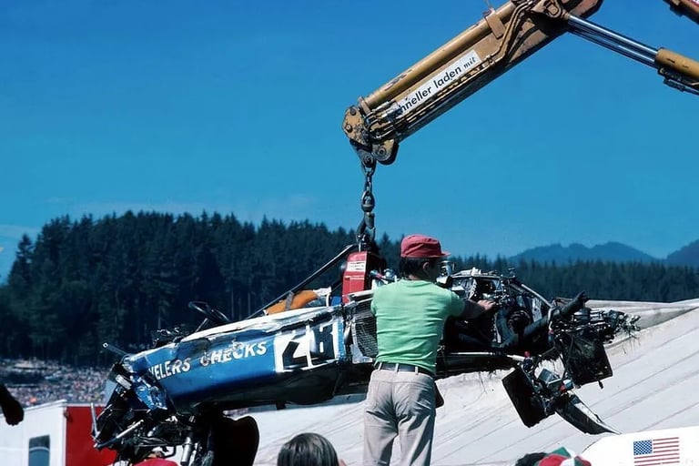 The 1975 Austrian Grand Prix at the Österreichring remains one of the most dramatic, tragic, and chaotic races in Formula One history — a weekend defined as much by loss as by unexpected glory. On the warm Sunday of 17 August 1975, some 140,000 spectators filled the high-speed Styrian circuit, eager for another thrilling chapter in the 1975 World Championship. But long before the lights went out, tragedy struck. During the morning warm-up session, American driver Mark Donohue suffered a catastrophic crash when a front tyre failed at high speed in the Vöest-Hügel corner. His Penske-run March hurtled through catch fencing and advertising hoardings, striking track marshal Manfred Schaller, who was killed instantly, and injuring another official. Donohue survived the initial impact but suffered severe brain trauma and died two days later, casting a dark shadow over the race weekend.