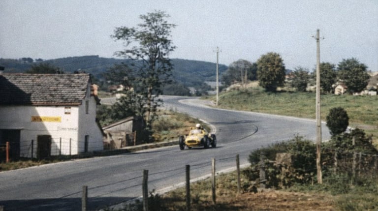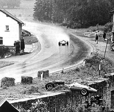 Burnenville did not forget. Six years after claiming the life of Chris Bristow, the same corner delivered one of the most dramatic near-misses in the circuit's history during the 1966 Belgian Grand Prix, when Jo Bonnier lost control of his Cooper-Maserati at the corner's exit and slid off the road, the car coming to rest on the very edge of a steep ravine with nothing but a sharp drop below. Bonnier walked away uninjured — but the image of the Cooper teetering on the precipice of Burnenville achieved a life of its own far beyond the racing world: the footage was featured in Grand Prix, the landmark 1966 John Frankenheimer film that brought Formula 1 to mainstream cinema audiences worldwide, cementing that moment as one of the most iconic visuals in motorsport history. The photograph and footage were a reminder that Burnenville did not always demand a life, but it always demanded respect. And on the days it received neither, the consequences were absolute.