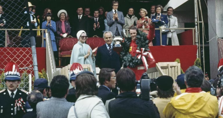 In the Monaco of 1975, the trophy ceremony was not a generic corporate affair on a temporary podium. Grace Kelly — former Hollywood icon, wife of Prince Rainier III of Monaco — personally presented Niki Lauda with the winner's trophy. The image of the elegant princess handing the prize to a precise, sharp-eyed Austrian engineer became one of the iconic photographs of the season. It was Monaco at its most Monaco.