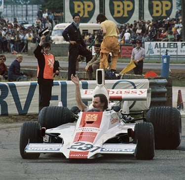 Hill had already officially retired as a driver after 176 Grand Prix starts — a world record at the time — following his failure to qualify at Monaco. Now he was concentrating entirely on managing his Embassy Hill team, with the immensely promising young Briton Tony Brise as his lead driver. The crowd applauded a man who had given them seventeen extraordinary years.