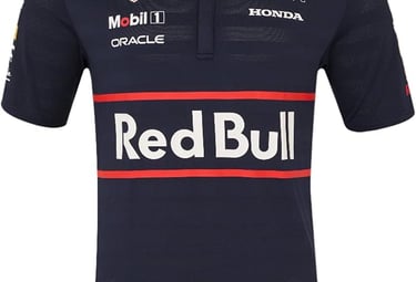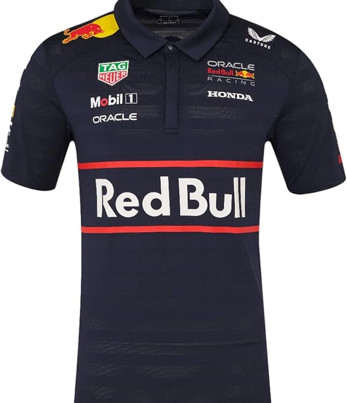 OFFICIAL RED BULL RACING TEAM POLO: Authentic 2025 Formula 1 team shirt featuring official Red Bull Racing branding and team sponsors
