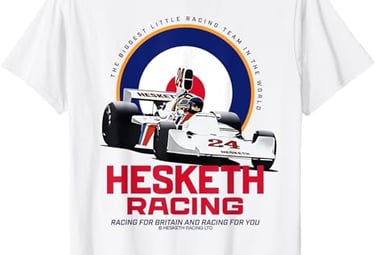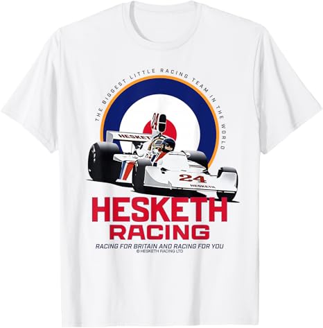 Stand out with official Hesketh Racing merch featuring striking retro graphics, Union-inspired colors, and the legendary “Racing for Britain and Racing for You” slogan.