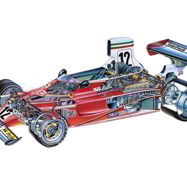 The Ferrari 312T — the "T" standing for trasversale (transverse) — arrived in 1975 as the result of years of refinement and revolutionary thinking. Forghieri, Ferrari's legendary chief engineer, repositioned the five-speed gearbox transversally behind the engine, dramatically lowering the car's center of gravity and transforming its handling. Combined with the thunderous 3.0-litre flat-12 engine, which produced around 490 horsepower, the 312T was a weapon unlike anything Ferrari had fielded in years.
